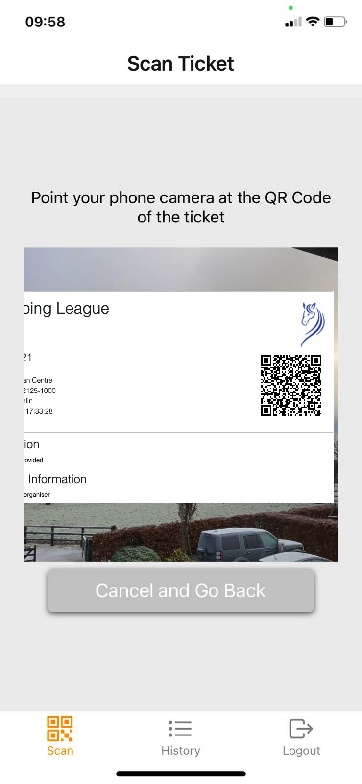 The App will read the QR code, and validate it. Assuming it is a valid ticket then you can check the ticket details, and then tap the "Confirm Ticket Scan" button to complete the process.